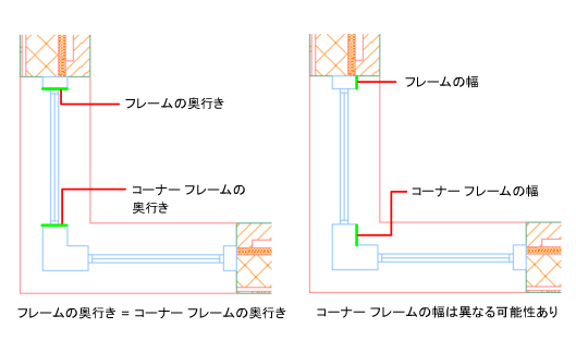 コーナー窓では、フレームの奥行きとコーナー フレームの奥行きは同じです。フレームの幅とコーナー フレームの幅は異なる場合があります。コーナー フレームの短い側がコーナー フレームの幅を決定するために使用されます。