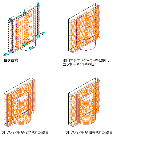 ボディ モディファイヤを作成して壁に追加するには、次の操作を実行します。 ボディ モディファイヤは、1 つのコンポーネントからなる壁に適用することも、複数のコンポーネントからなる壁の特定のコンポーネントに適用することもできます。