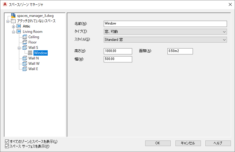 | 開口部に割り当てられている窓スタイルまたは組合せ窓スタイルを変更するには | 一覧から窓スタイル、ドア スタイル、組合せ窓スタイルを選択します。 一覧には、図面で使用可能なすべてのスタイルが表示されます。 |