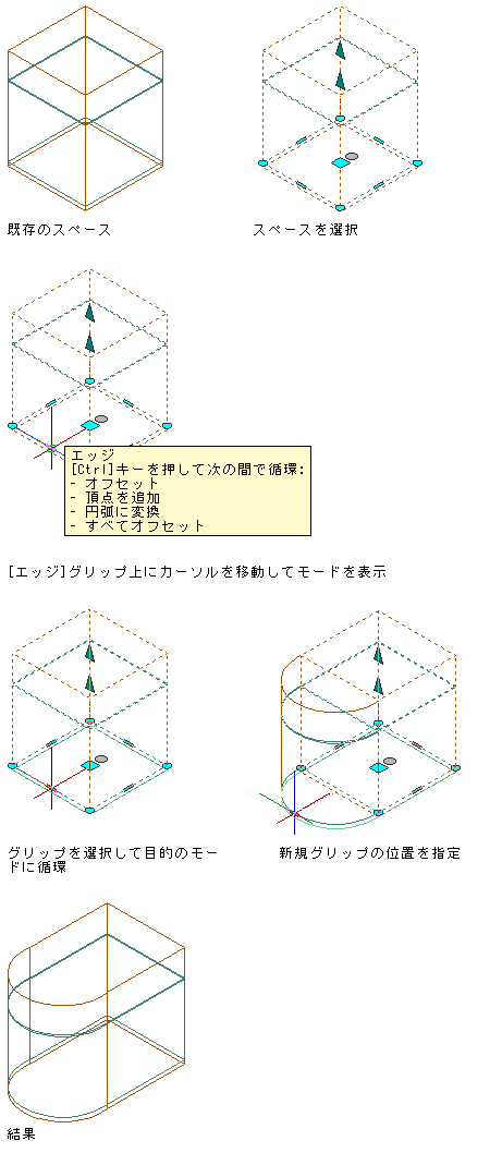 エッジ グリップを使用してスペース境界のエッジを円弧に変換