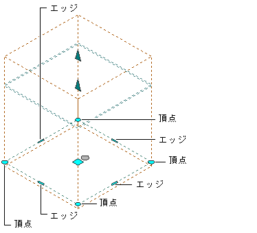 - 頂点を追加: 選択したエッジに頂点を追加し、新しいエッジを作成するには、この編集モードを使用します。 選択したエッジが円弧の場合には、新しいエッジも円弧になります。