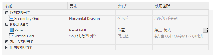 ネストしたグリッドにフレームを割り当てる