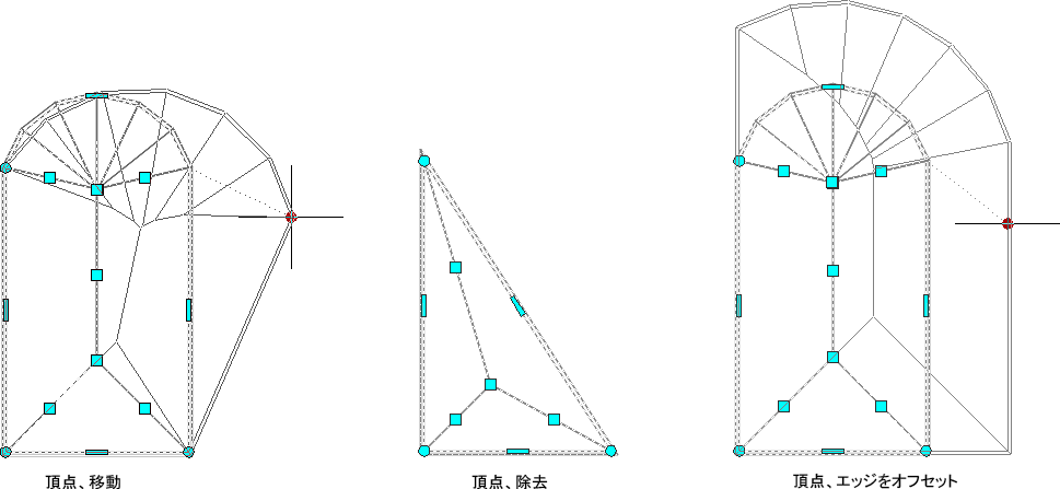 頂点グリップには、次の3 つの編集モードがあります。