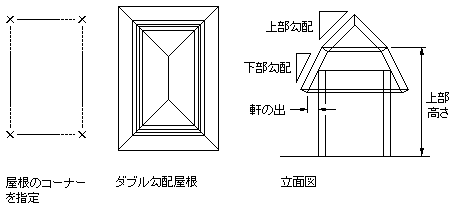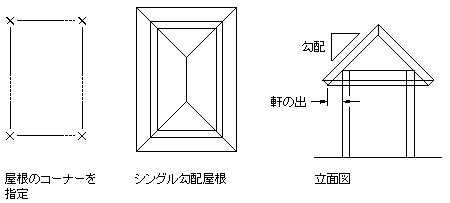- 作図領域で、屋根の各コーナーの点を指定します。