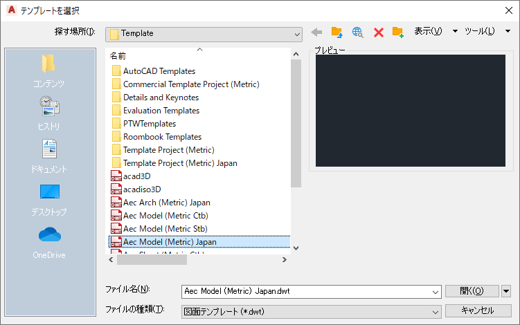 ソフトウェアで提供されている図面テンプレートは C:¥ProgramData¥Autodesk¥ACA <バージョン>¥jpn¥Template にあります。テンプレート ファイルには、拡張子 DWT が付いています。