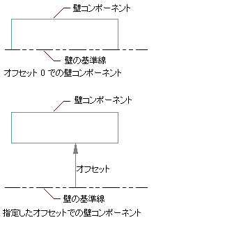 壁コンポーネントの基準線オフセット パラメータ