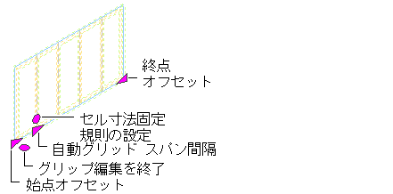| グリッドの終点オフセットを変更するには | [終点オフセット]グリップを選択し、適切な位置に移動します。 |