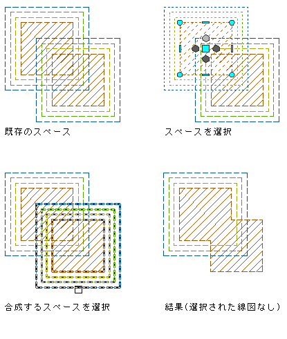 合成するスペースのスペース境界が異なる方法で決定される場合、最初に選択したスペースで使用されている方法が、合成の結果得られるスペースでも使用されます。