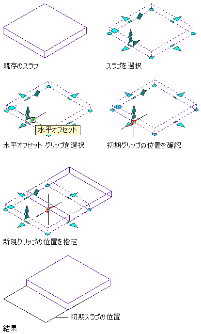 水平オフセット グリップを使用してスラブの水平オフセットを変更する