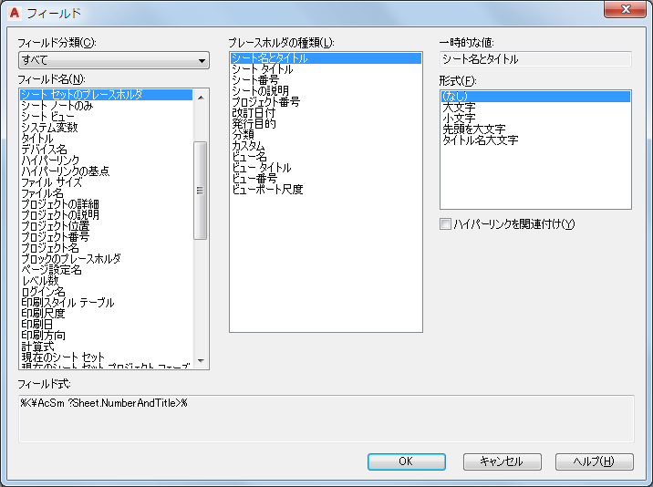 ヒント: シート セット カテゴリには、ビューとシートのフィールド含まれています。