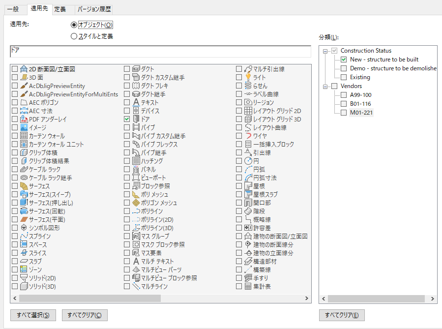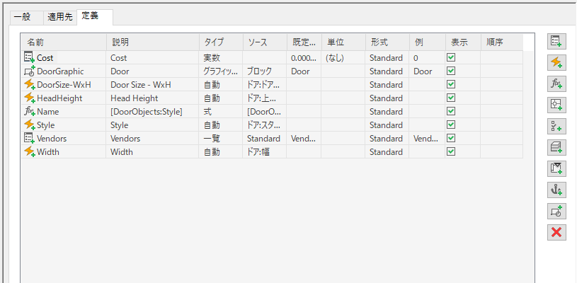ドア オブジェクトに適用されるプロパティ セット定義