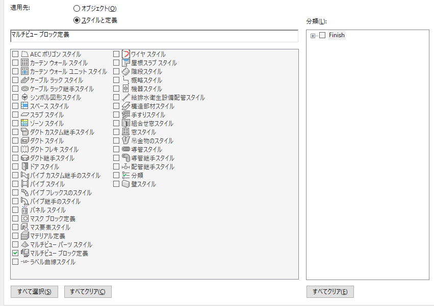 スタイルのすべてのインスタンスで同一の手動プロパティは、スタイル(壁スタイルなど)または定義(マルチビュー ブロック定義など)に適用される、スタイルに基づくプロパティ セット定義に属します。
