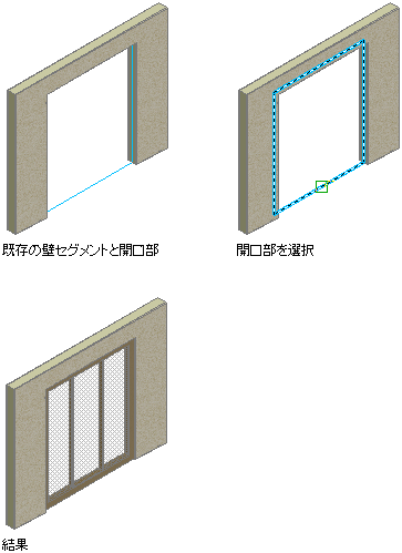 注: ドア、窓および開口部のコレクションから組合せ窓を作成する場合は、選択した各オブジェクトから組み合わせをひとつ作成します。