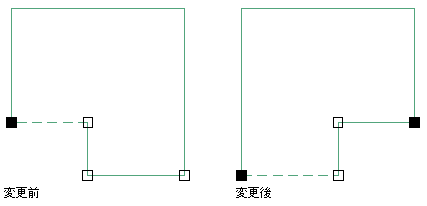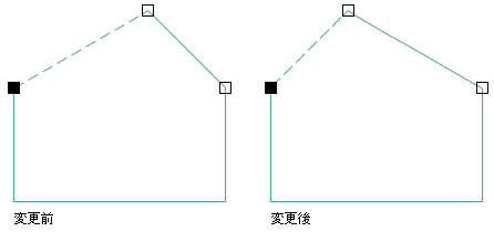 壁のルーフ ラインやフロア ラインに適用された状態を反転するには、次の操作を実行します。 ルーフ ラインまたはフロア ラインを反転しても、壁の始点と終点は反転されません。