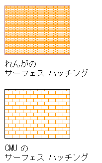 壁の立面図上にあるサーフェス ハッチング マテリアルの表示