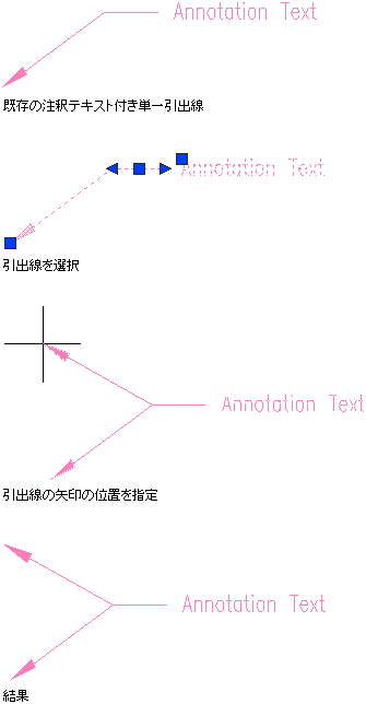 指定した引出線またはシンボルに最も近い点を始点とする新しい引出線が追加されます。