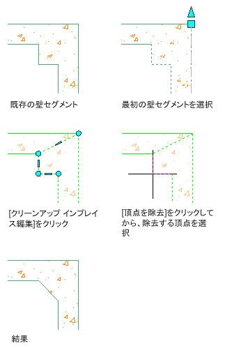 次の例では、構造壁のコーナーから頂点を除去して、面取りの状態を作成しています。