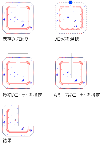 矩形のコーナーを指定してブロックの一部を差し引く