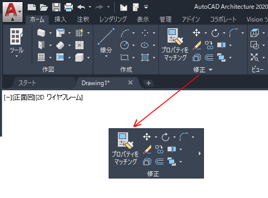 一部のリボン コマンドは、ドロップダウン メニューにグループ化されています。これらのコマンドにアクセスするには、コマンドの横にある矢印をクリックします。