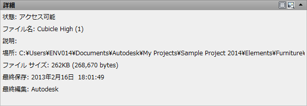 - [見つかった場所]には、外部参照が発見されたパスが表示されます。外部参照のパスが保存されていない場合、または指定されているパスに外部参照が存在しなくなっている場合には、プログラムによって外部参照が検索され、その場所が[見つかった場所]に表示されます。