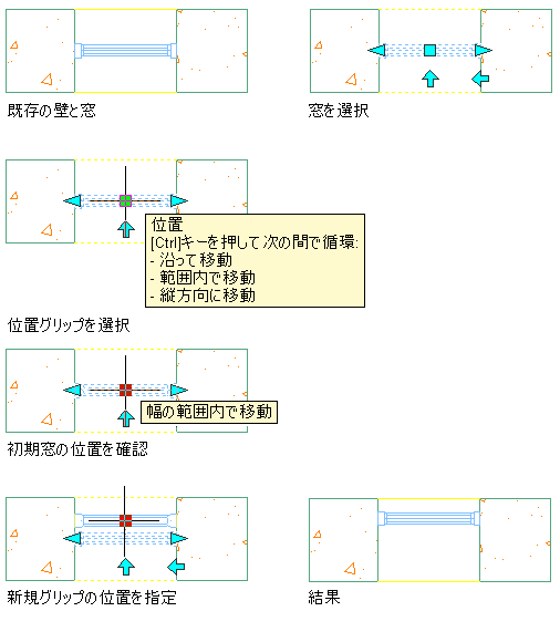 参照場所から窓をオフセットして、壁に沿って 1 つまたは複数の窓を移動するには、次の手順を実行します。