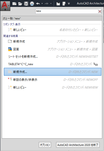 アプリケーション メニューでは、コマンドを検索して、一致リストからコマンドを選択することができます。検索結果は次の場所から取得されます。