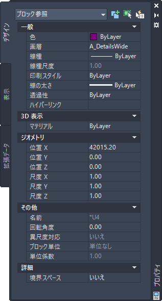 次の図では、コンクリート組積造ユニット詳細ブロックのプロパティ パレットの[デザイン]タブが表示されています。