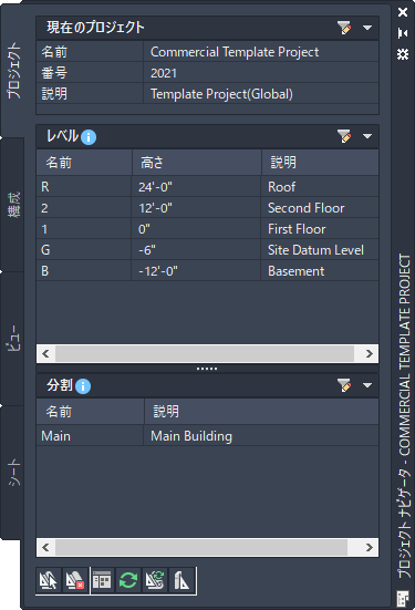商用テンプレート プロジェクトには、開始点となる 5 つの基本レベルが含まれています。