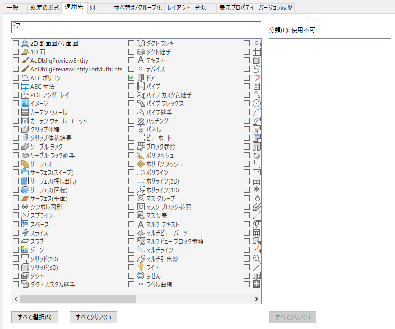 スタイルで指定されたすべてのオブジェクト タイプに対してプロパティ セットを適用する必要があります。たとえば、窓と組合せ窓の集計表スタイルでは、組合せ窓スタイルのプロパティ セットは、窓に適用されないので使用できません。 また、集計表スタイルに含めるオブジェクト タイプの数を制限すると、図面のパフォーマンスが向上します。