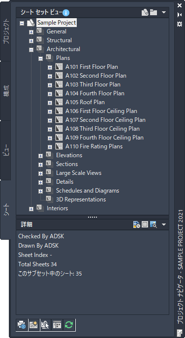 AutoCAD Architecture 2027 Toolset のプロジェクト ナビゲータに表示されるプロジェクト シート セット