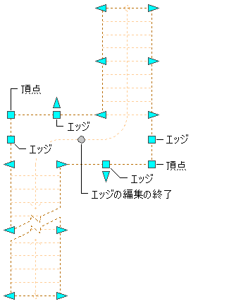 複数の踊り場のある階段の踊り場エッジと頂点、およびエッジの編集の終了グリップ