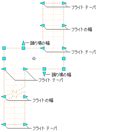 | (エッジ) | エッジを移動することで、複数踊り場階段の一続き階段の幅を変更します。 |