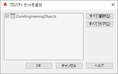 - [プロパティ セットを追加]ダイアログ ボックスで[ZoneEngineeringObjects]を選択し、[OK]をクリックします。