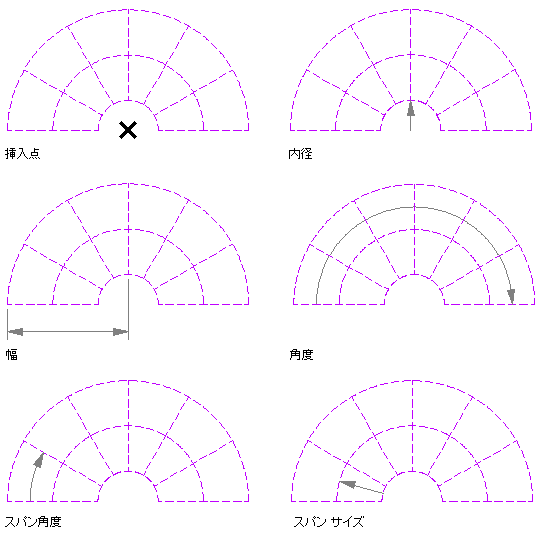 - 放射状レイアウト グリッドの中心を挿入する点を図面上で指定します。