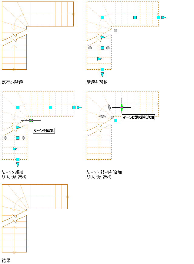 曲階段ターンに踏み板を追加するには、次の手順を実行します。