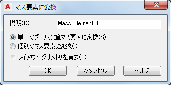オブジェクトを自由形状マス要素へ変換するには、次の手順を実行します。結果として生じる自由形状マス要素はオブジェクトの切り子面のようになります。曲線エッジの滑らかさは、FACETDEV 変数によってコントロールされます。
