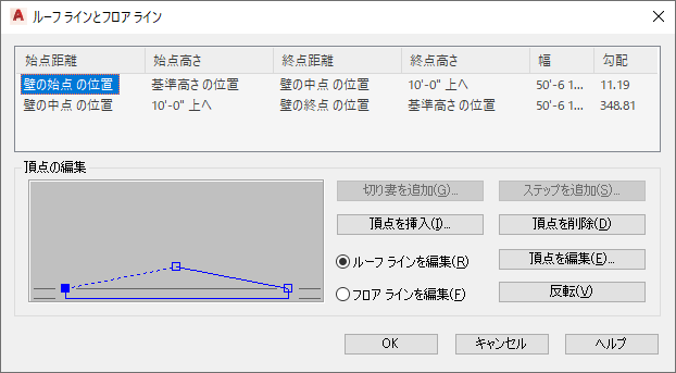 - ルーフ ラインまたはフロア ラインを反転するには、[反転]をクリックします。