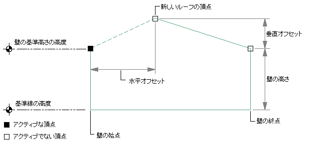 - 壁のルーフ ラインやフロア ラインの頂点を追加、移動、除去する