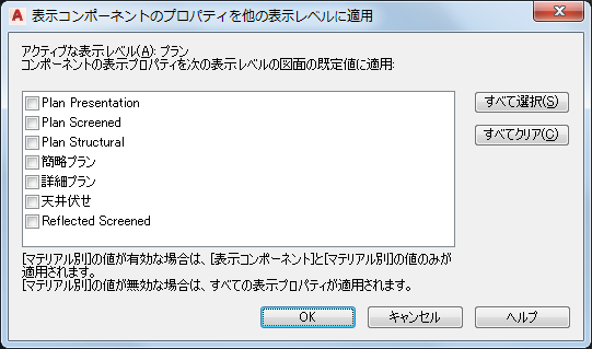 選択したオブジェクトのみ。これはオブジェクトの優先設定と呼び、図面の既定設定またはスタイルのいずれかに優先します。 |