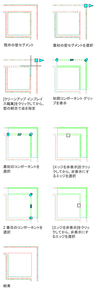 壁コンポーネントのエッジを非表示にすることで、壁交差を修正するには、次の手順を使用します。これは、正しく表示されないコンポーネント エッジを持つ交差の状態がある場合に役立ちます。