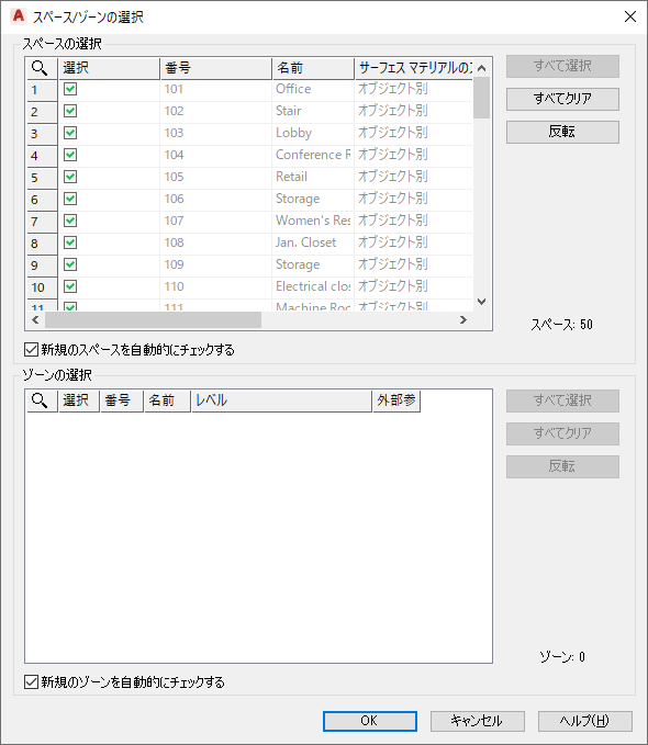 - このダイアログ ボックスでは、計算するスペースとゾーンのみをチェックボックスで選択することができます。