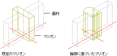 - マリオンの幅や奥行きに合うように輪郭のサイズを調整するには、[輪郭を自動調整]領域の[幅]または[奥行き]を選択します。