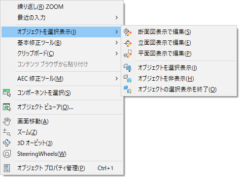 図面の汎用的なコンテキスト メニュー