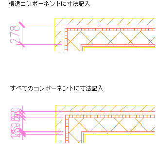 マルチコンポーネント壁の寸法スタイルを作成する際、この区別は重要です。寸法スタイルでは、構造部材コンポーネントのみの寸法を記入するよう定義することができるためです。