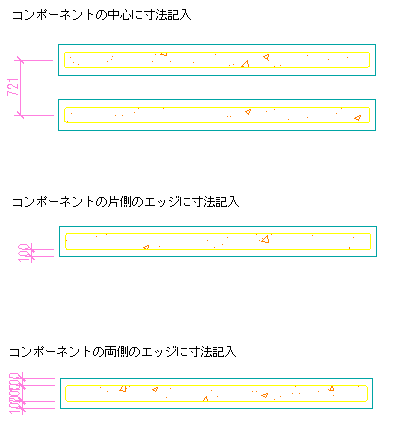 - [寸法記入]で、コンポーネントの片側、両側、中心のうち、どこに寸法を記入するのかを選択します。