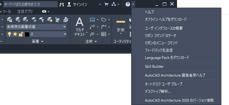 ワークスペースは、建築プロジェクトの設定、デザインの作成、実施設計図書の生成に使用するリボン、ツール パレット、および他のコントロールを備えた図面ウィンドウで構成されています。