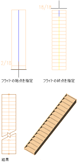 | 一続き階段の各踏面を指定するには | すべてのフィールドを |
