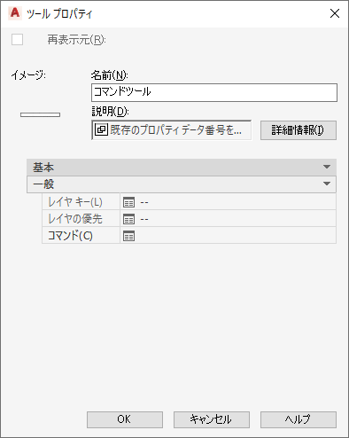 | イメージ | 既定では、コマンド ツールに関連付けられているイメージはありません。ツールの機能を示すイメージを追加するには、空のイメージ領域で右クリックし、イメージを選択します。 |