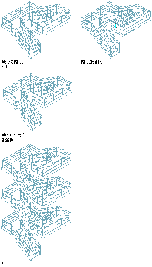 注: 階段塔に含めるスラブを選択する場合は、スラブは選択した階段の最上部になければなりません。