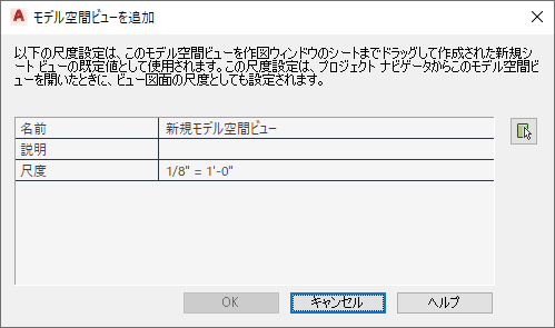 | モデル空間ビューの説明を入力するには | [説明]の設定をクリックして、モデル空間ビューの説明を追加します。 |